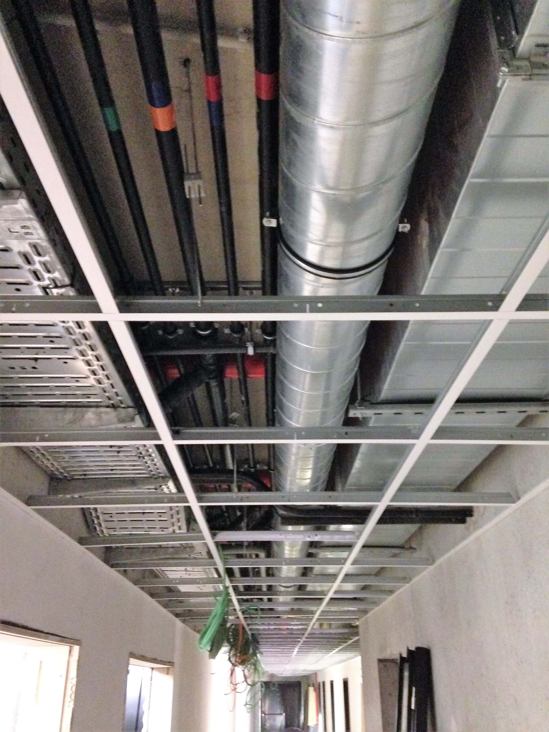 Zorgvuldige coördinatie van het techniekenpakket met de structuur en architectuur om de vrije hoogte optimaal te houden. Daartoe zijn kanalen gedeeltelijk over het dak geplaatst.