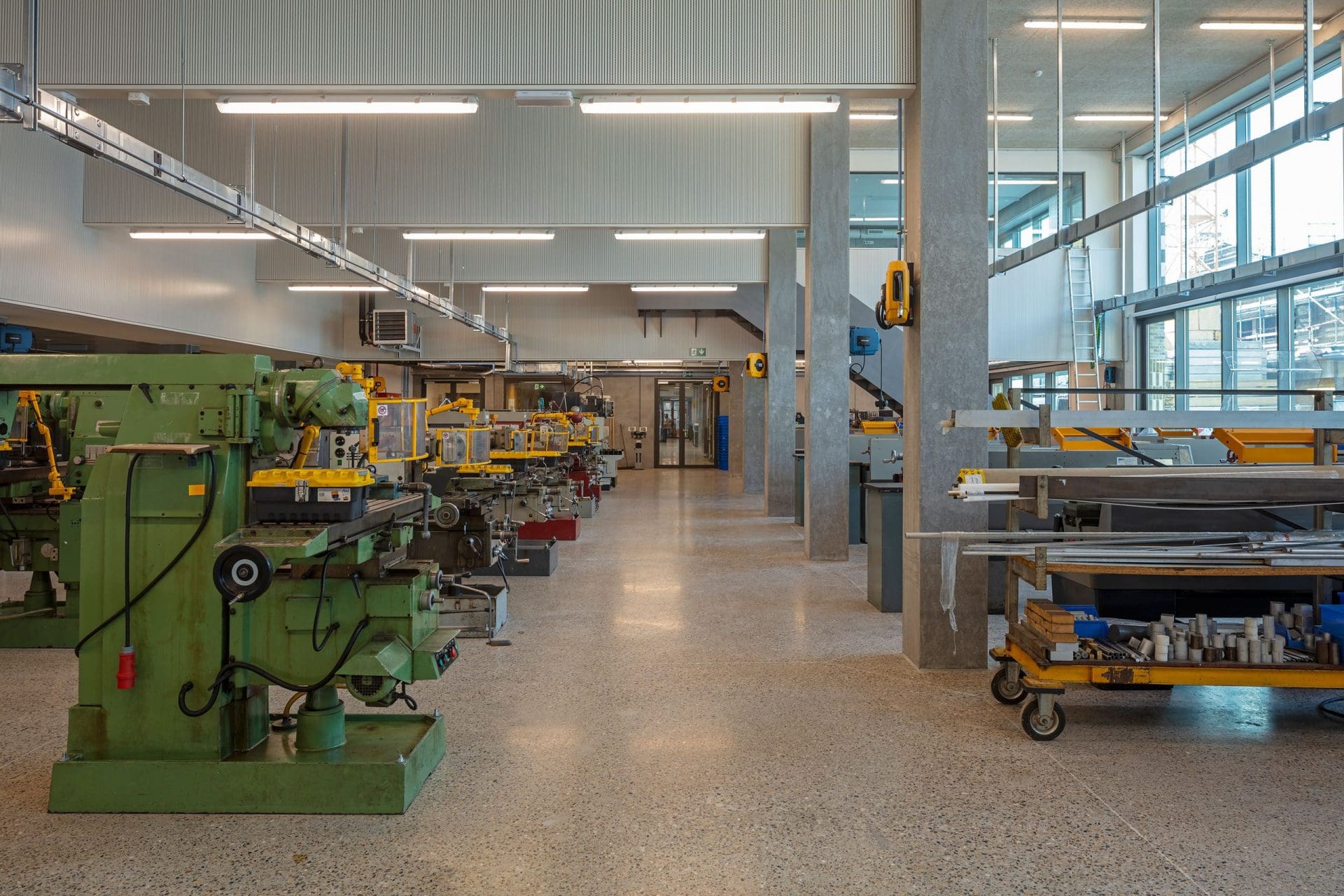 Zowel technische ateliers als administratieve ruimtes vinden onderdak binnen één gebouw. De technische installaties zijn aangepast aan de specifieke noden van de verschillende types